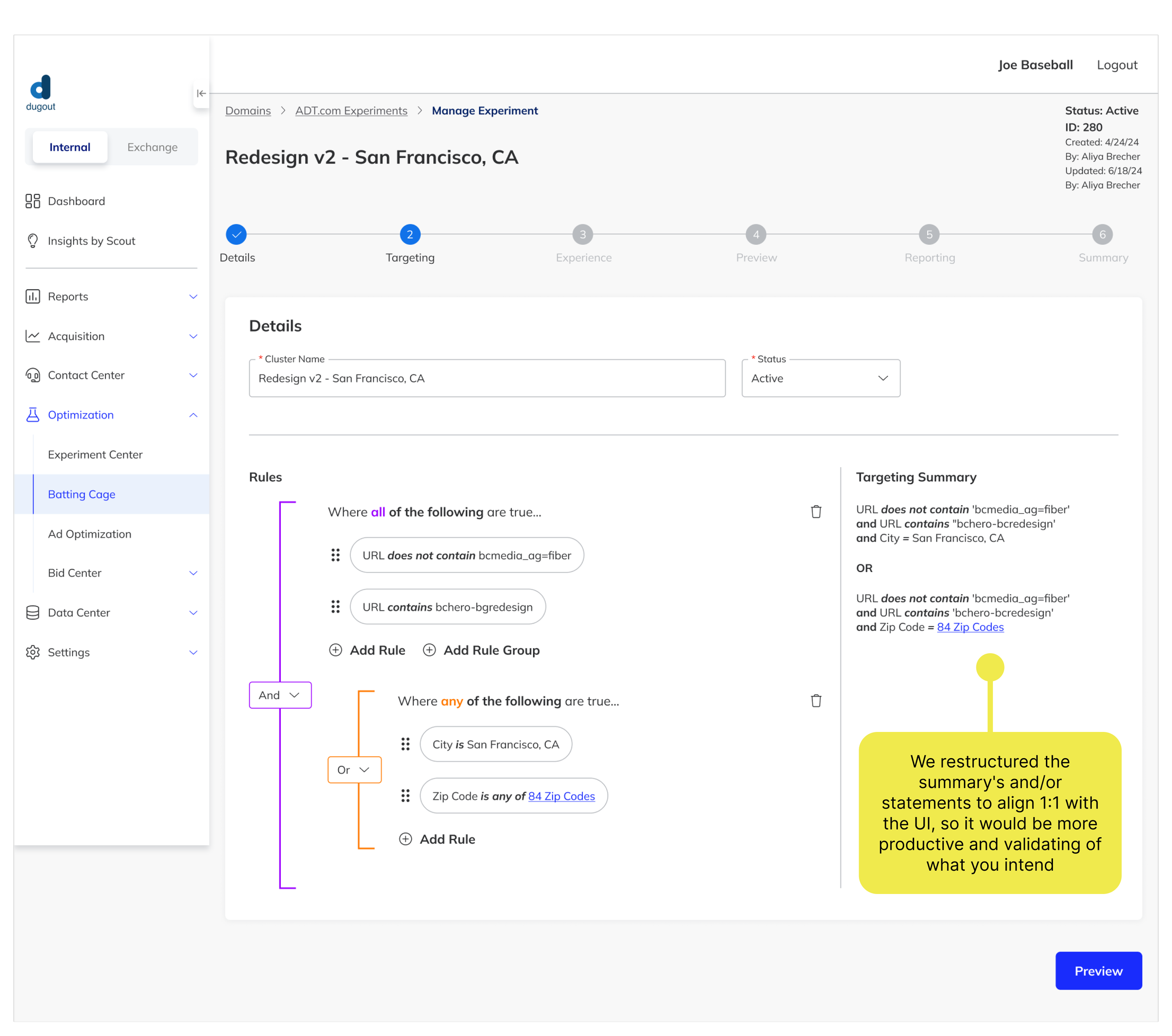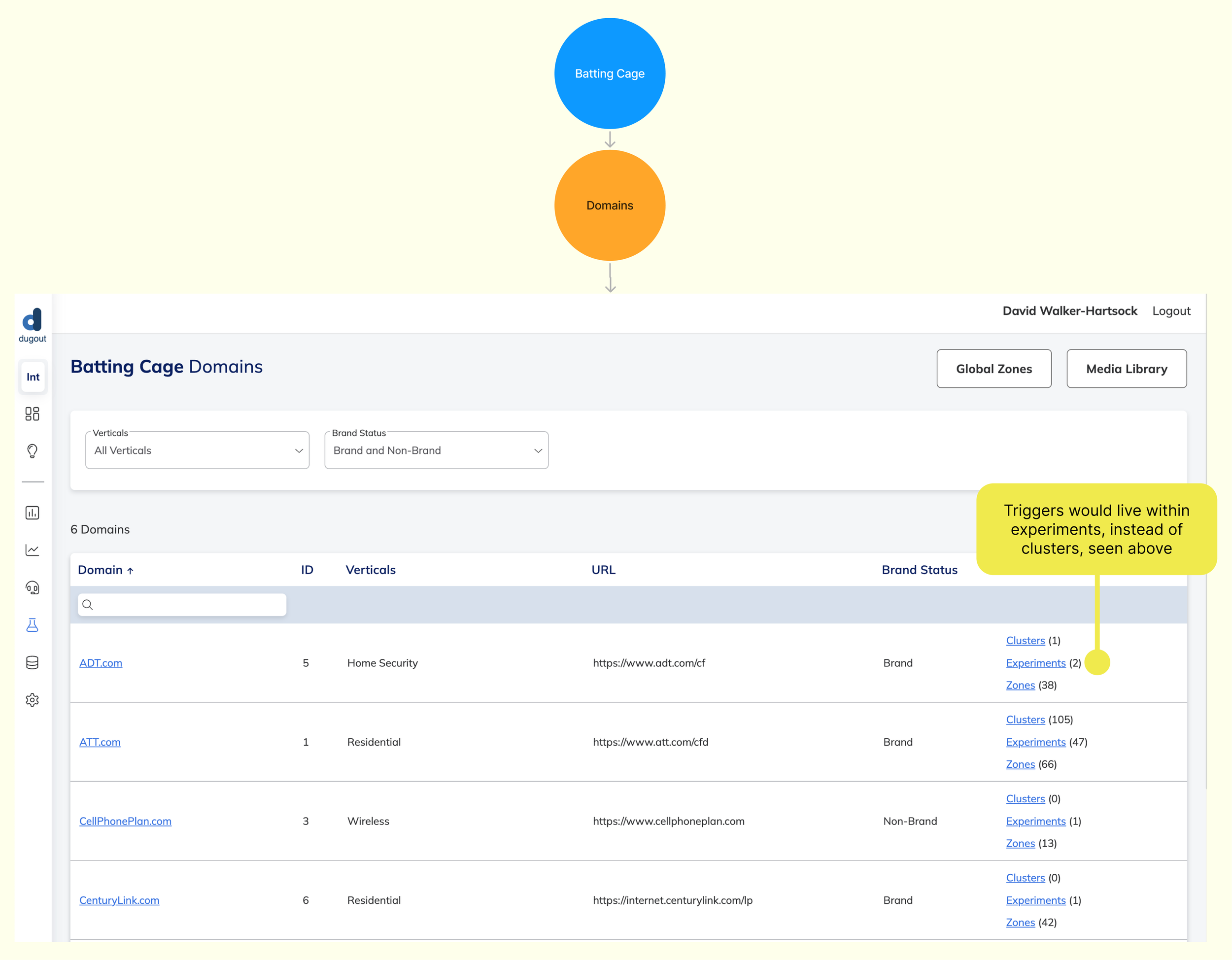 We persuaded product to make domains the north star, so Batting Cage opens to an intuitive starting point, as seen in the finished design: