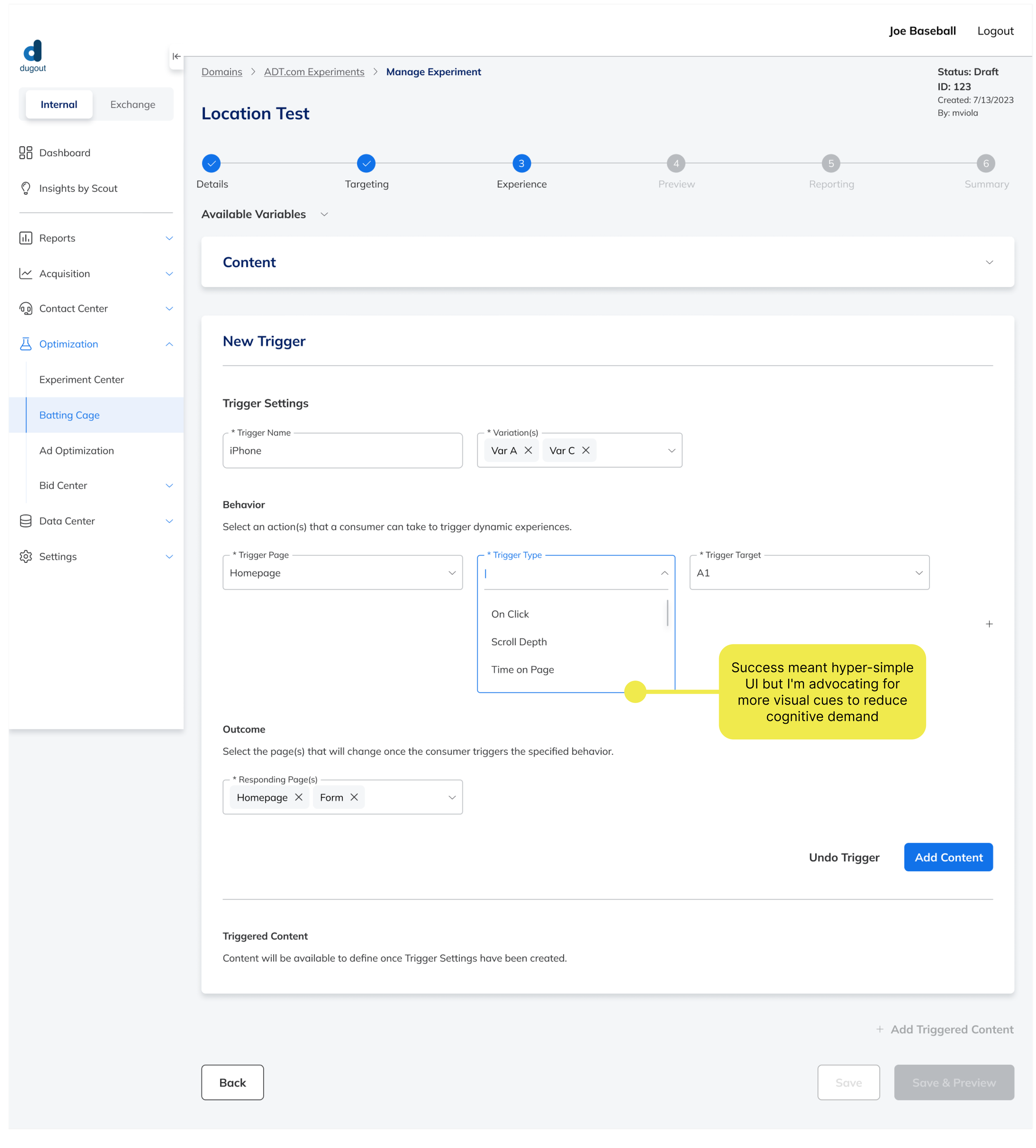 The first question we asked ourselves was: how would this media buyer find where to begin personalizing an A/B test in the platform?