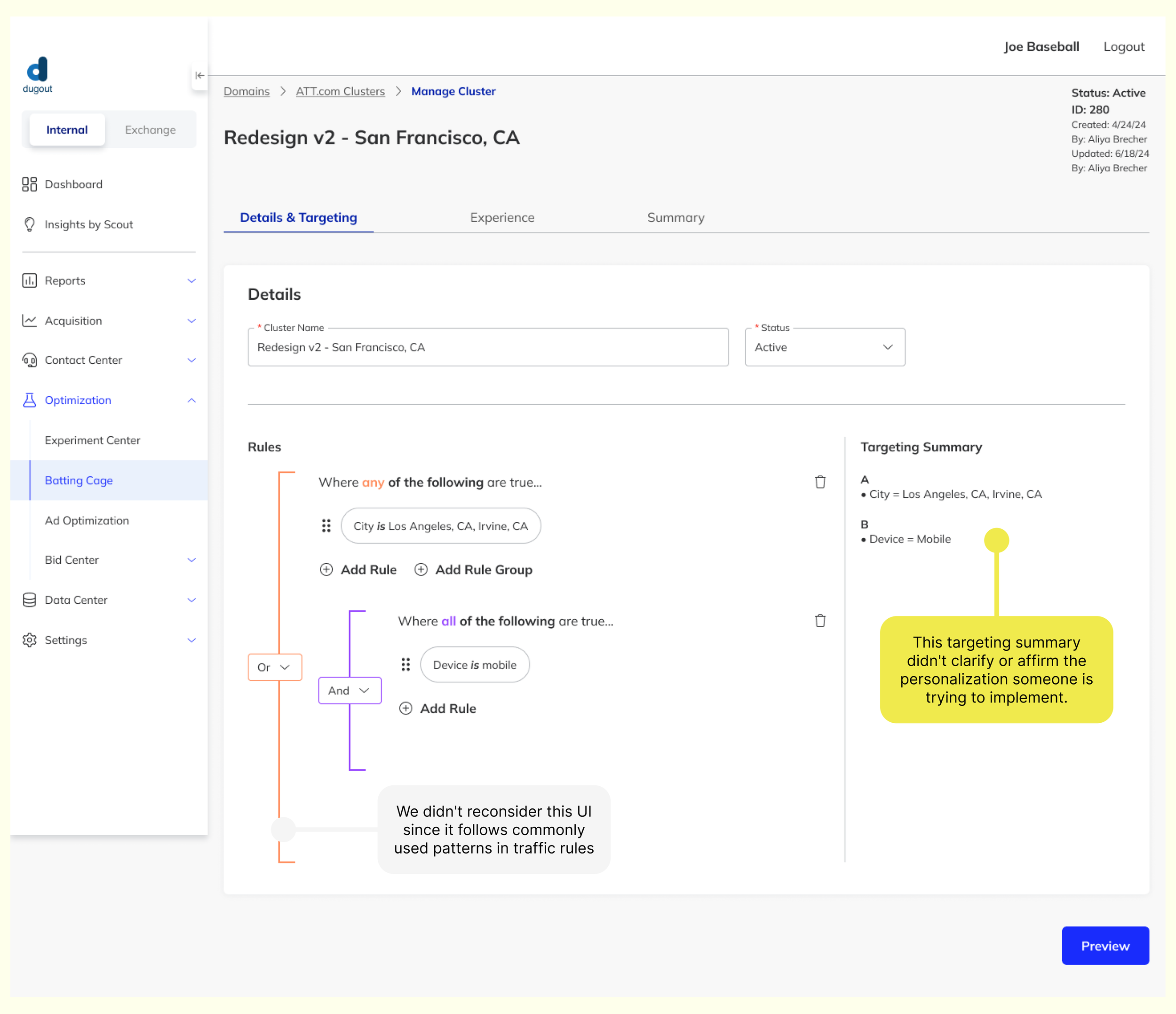 We approached our platform’s personalization development with Centerfield’s internal user in mind:
