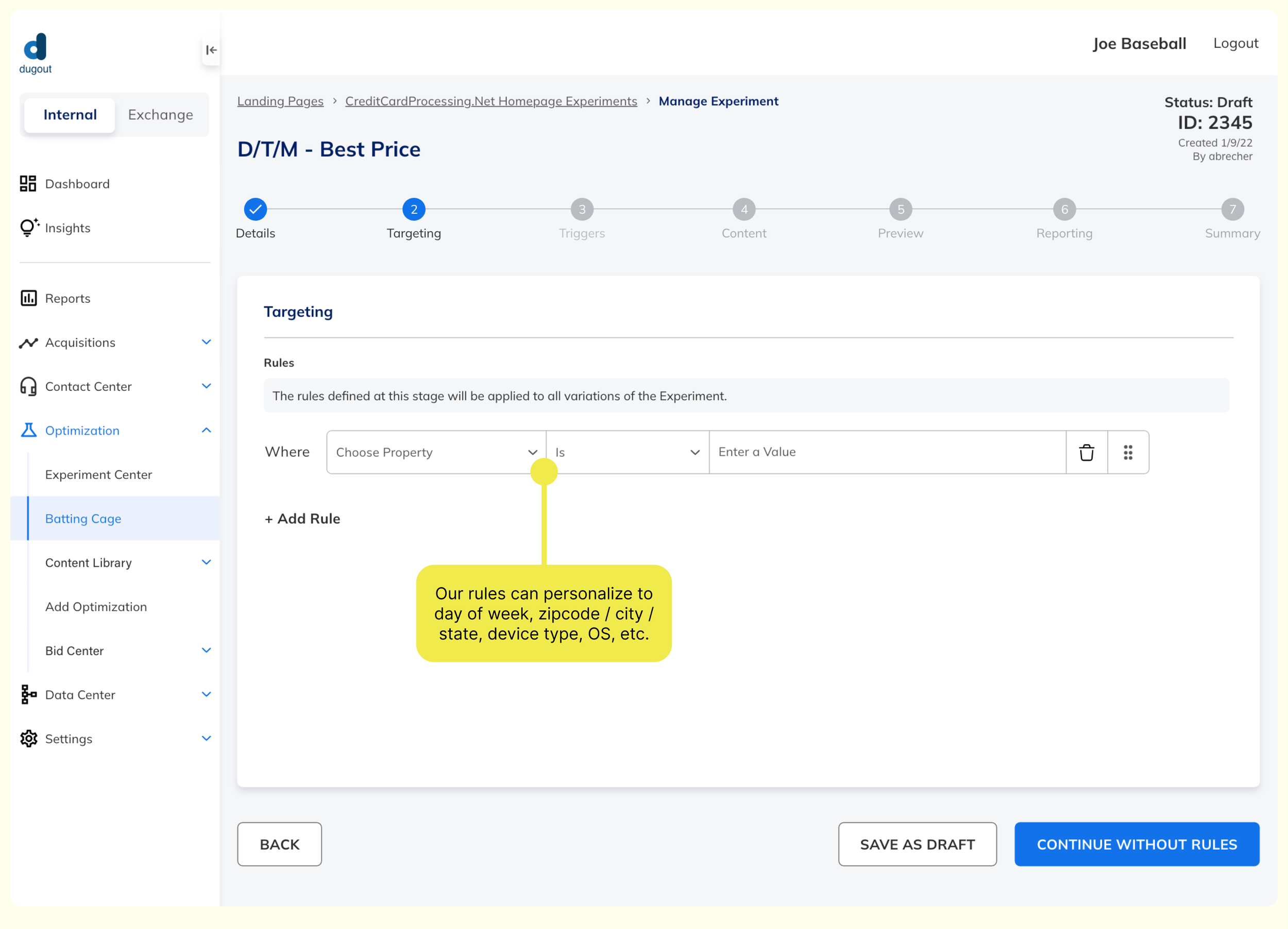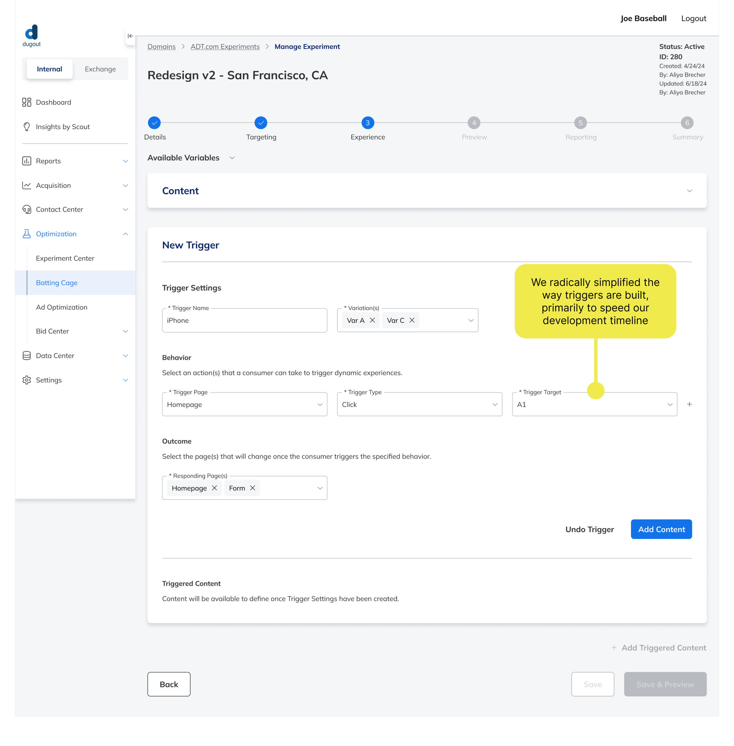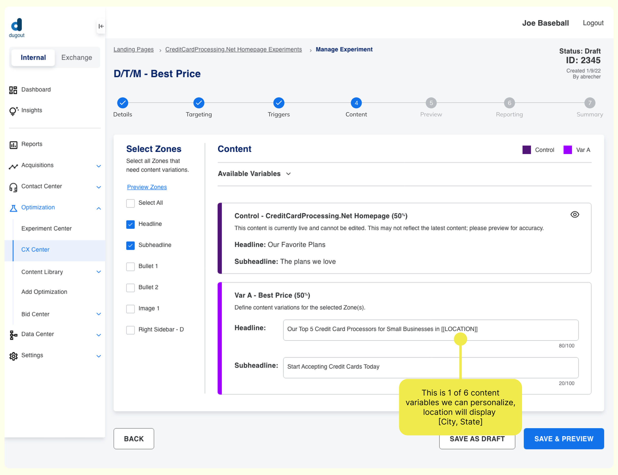 Within Dugout, we built the capability to personalize these website experiences in real-time with backend customization.